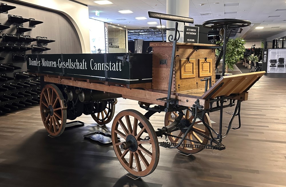 La semana pasada tuvimos el privilegio de acompañar a Daimler Truck y conocer de cerca el primer camión de la historia (de combustión), fabricado por Gottlieb Daimler en 1896. Un vehículo pionero que combinaba la estructura de un carruaje con un motor de combustión interna, marcando el inicio del transporte de carga moderno.