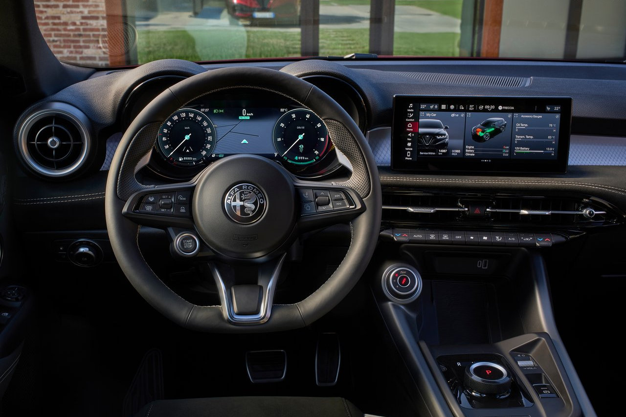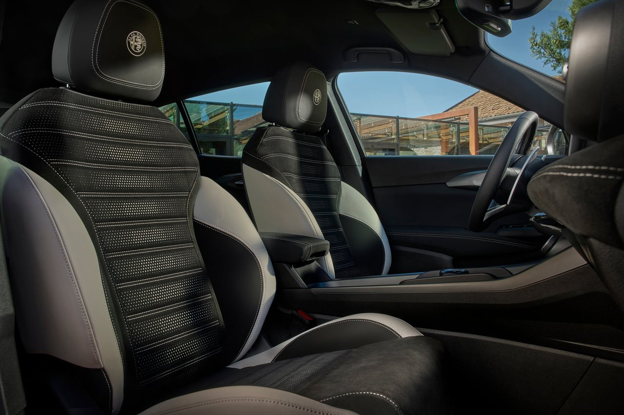 Los asientos premium ofrecen ajuste eléctrico de ocho posiciones, soporte lumbar eléctrico, calefacción y ventilación. El nuevo selector de marchas giratorio en la consola central rediseñada aporta funcionalidad, complementándose con las levas de aluminio en el volante. La edición Sport Speciale incorpora una luz ambiental multicolor con efecto degradado inspirado en el Biscione, el emblema de la serpiente de Alfa Romeo.