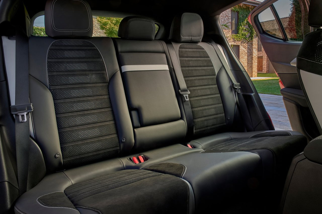 El habitáculo ha evolucionado con la incorporación de materiales premium y nuevas combinaciones. Los asientos cannelloni están disponibles en cuero rojo con costuras a juego o en Alcantara bicolor blanco y negro. Este último acabado se extiende al salpicadero con costuras en contraste.