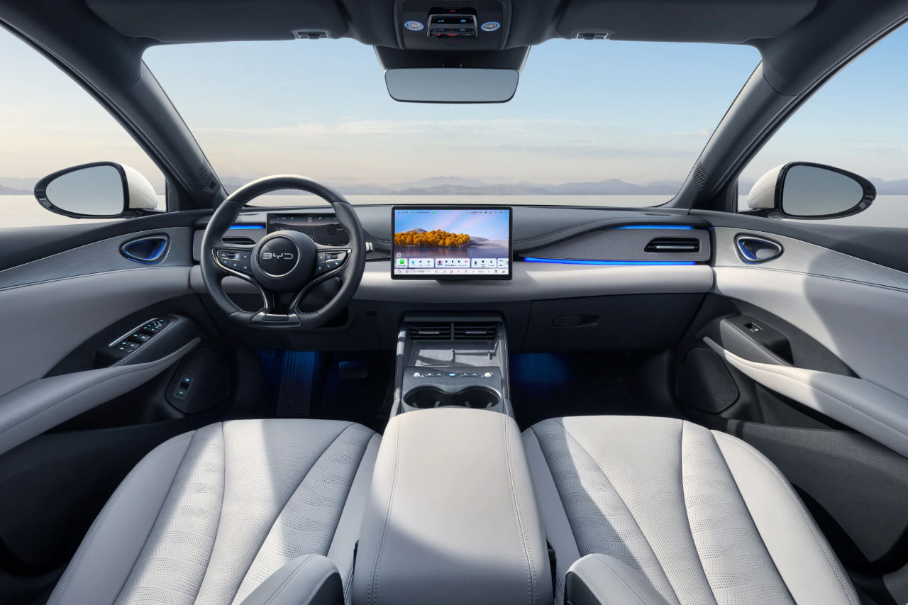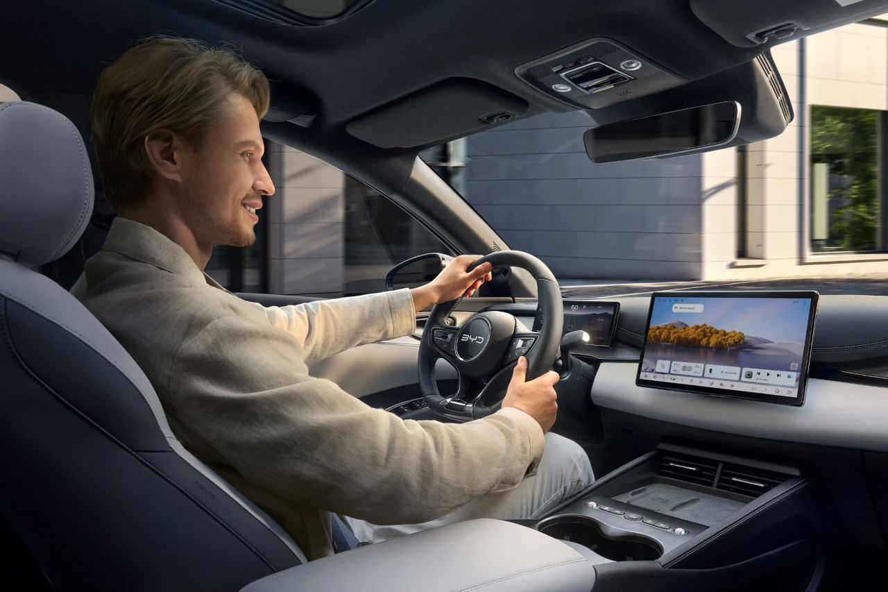 El sistema de infoentretenimiento cuenta con pantallas táctiles que varían según el acabado, disponibles en 12,8 o 15,6 pulgadas, proporcionando una interfaz moderna para la gestión de las funciones del vehículo. Estas tecnologías se han convertido en características distintivas de la marca BYD en su expansión por el mercado europeo.