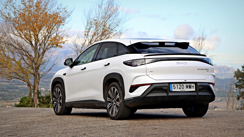 Y es que el Sealion 7 no es para nada pequeño, cuenta con 4,83 m de largo por 1,92 de ancho y 1,62 de alto por lo que como digo no lo aparenta. Sus líneas también son las culpables de que este coche sea bastante atemporal. Además, si que es cierto que su frontal, gracias a sus ópticas afiladas y las entradas de aire laterales, acentúan el carácter deportivo del Sealion y hacen que el conjunto tenga presencia en la carretera y que la gente se fije en el cuando pasa.