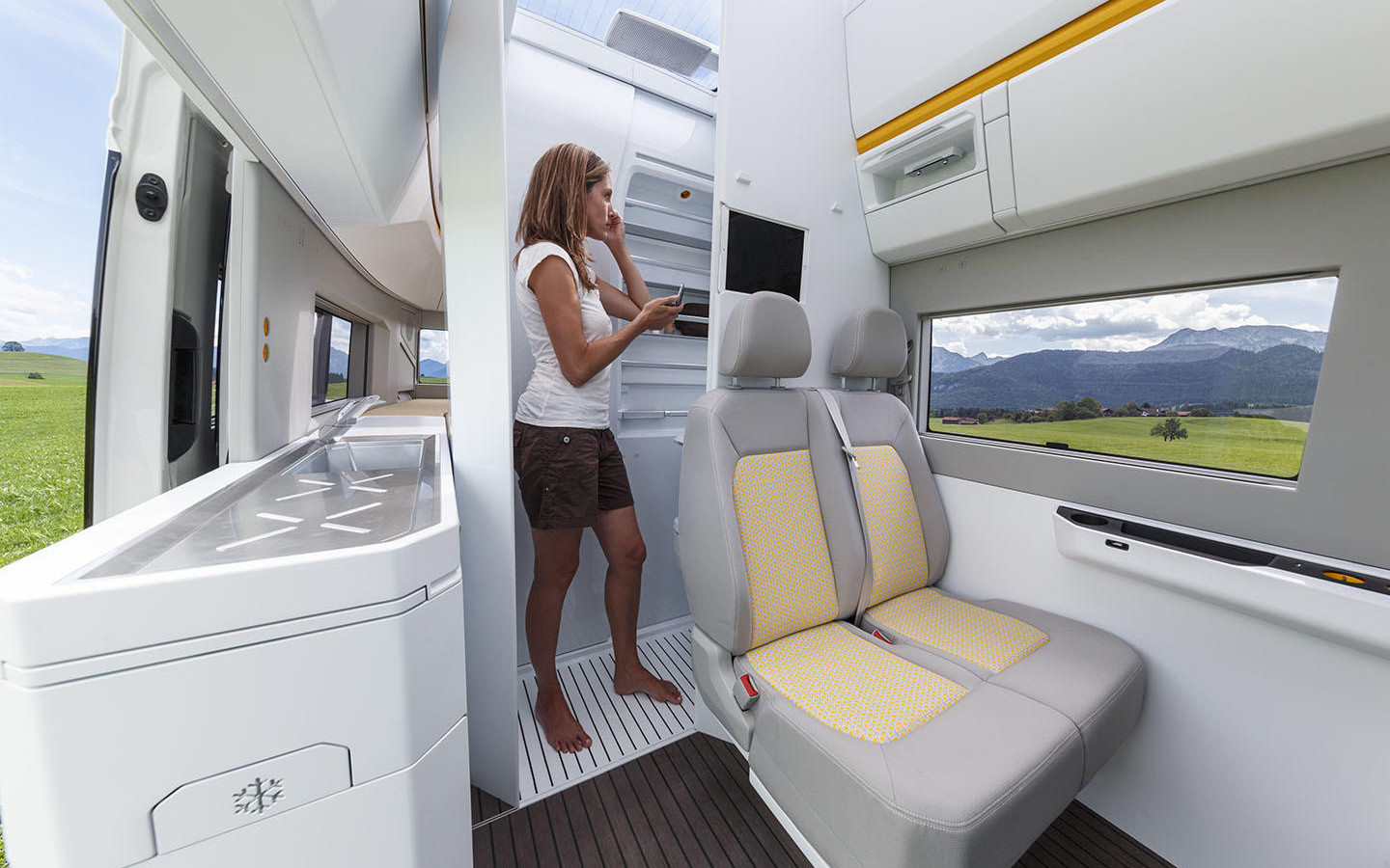 Cabe indicar que la California XXL se ha desarrollado sobre la base de la Volkswagen Crafter y no de la Transporter, dando como resultado un chasis de casi 6 metros, techo más elevado y varios espacios diferenciados dentro del habitáculo: