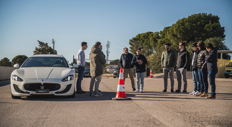 La jornada comenzó con un briefing a cargo de dos pilotos e instructores de la escuela de Francesc Gutierrez, que pusieron en contexto las actividades que se llevarían a cabo en la pista. Tras la clase teórica, los Maserati que acudieron a la cita se desplazaron hasta la pista para llevar a cabo el primero de los ejercicios, un launch control o salida lanzada con una frenada y esquiva para conocer, así como detener un deportivo de más de 400CV sin temor a perder el control.