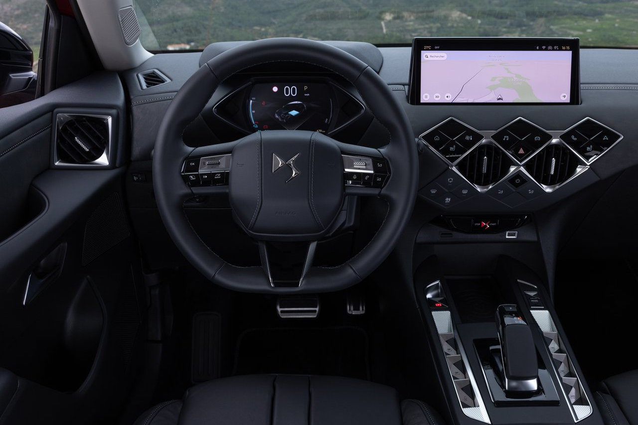 El habitáculo incorpora elementos como proyectores DS Matrix LED Vision y tiradores de puertas integrados que se despliegan automáticamente. La digitalización del puesto de conducción incluye pantallas configurables y sistemas de información adaptables a las preferencias del conductor.