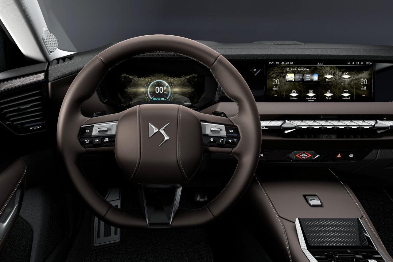 Las ruedas de gran diámetro (720 mm), enmarcadas por llantas de aleación de hasta 20 pulgadas, refuerzan el carácter audaz del vehículo. La firma luminosa constituye uno de los elementos más cuidados: en el frontal, un haz de luz se extiende desde los extremos del paragolpes para confluir en el logo DS iluminado en el centro de la calandra, mientras que, en la zaga, los pilotos traseros LED se complementan con molduras Dark Chrome con escamas en relieve grabadas con láser.