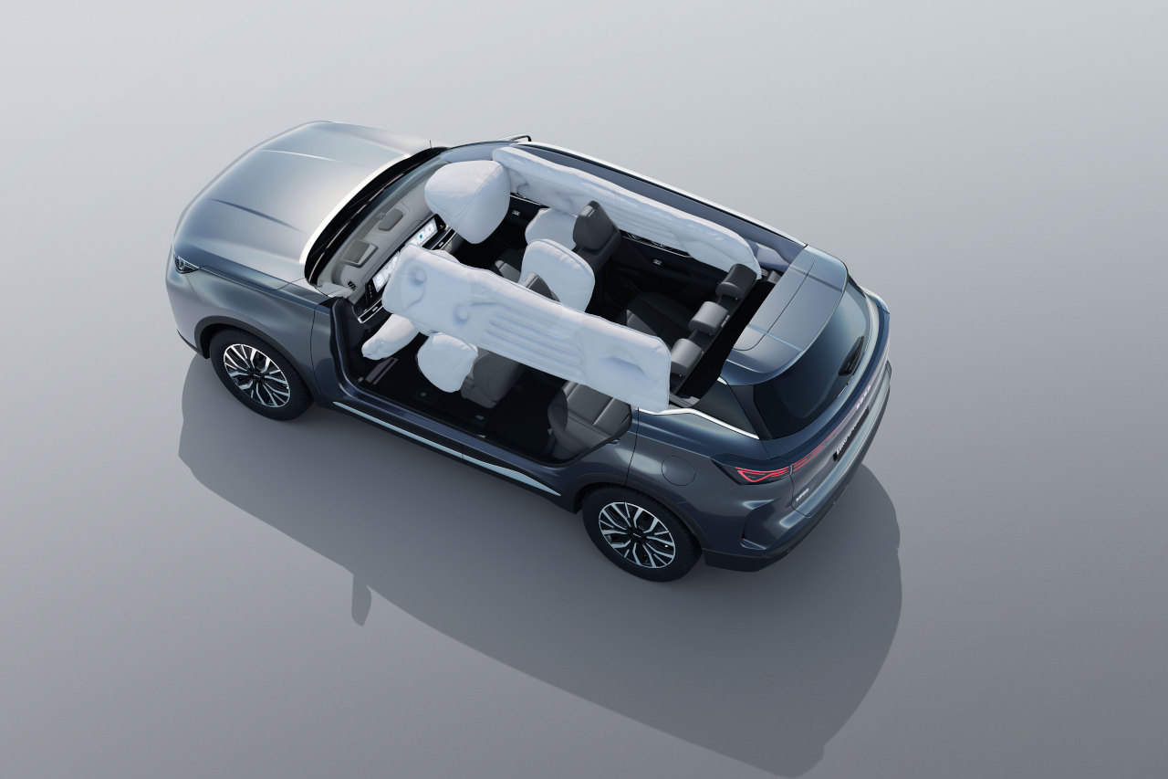 Ambos modelos incorporan un airbag central que evita el contacto entre ocupantes delanteros en impactos laterales. Los airbags de cortina mantienen la presión durante varios segundos tras el despliegue, garantizando una protección sostenida. La viga frontal de aluminio de alta absorción de energía y las zonas de deformación programada trabajan conjuntamente con el sistema de retención para minimizar intrusiones.