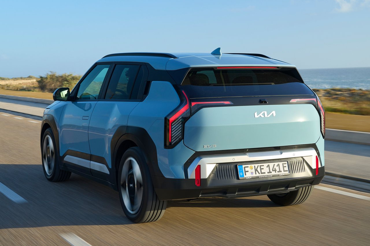 El Kia EV3 adopta un lenguaje de diseño que la marca denomina "Opposites United", caracterizado por líneas angulosas y una silueta que busca diferenciarse dentro del segmento de los SUV compactos. Más allá de la estética, estas formas tienen una función práctica: contribuyen a lograr un coeficiente aerodinámico bajo para un vehículo de esta categoría, lo que favorece la eficiencia energética.