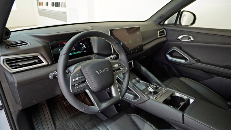 El interior del Atto 2 refleja el compromiso de BYD con la innovación y la calidad equipado con una pantalla táctil central de generosas dimensiones para el sistema de infoentretenimiento y un cuadro de instrumentos digital ofrece una experiencia de conducción conectada y moderna los materiales utilizados en el habitáculo son de alta calidad. El diseño minimalista proporciona una sensación de amplitud y confort, fijaos esta pantalla el dashboard que ahora son 8,8 pulgadas y va integrado en el salpicadero o esta pantalla central de 12,8 que además es superrápida como ya sabéis como siempre otras soluciones muy prácticas como esta consola flotante con un gran espacio.
