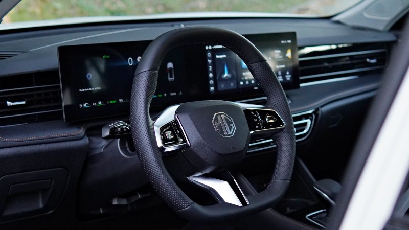 Lo primero que notas al entrar en este MG es sobretodo el salto cualitativo en los materiales y acabados. Tenemos superficies suaves al tacto, cuero en los asientos y un diseño interior muy limpio y minimalista.