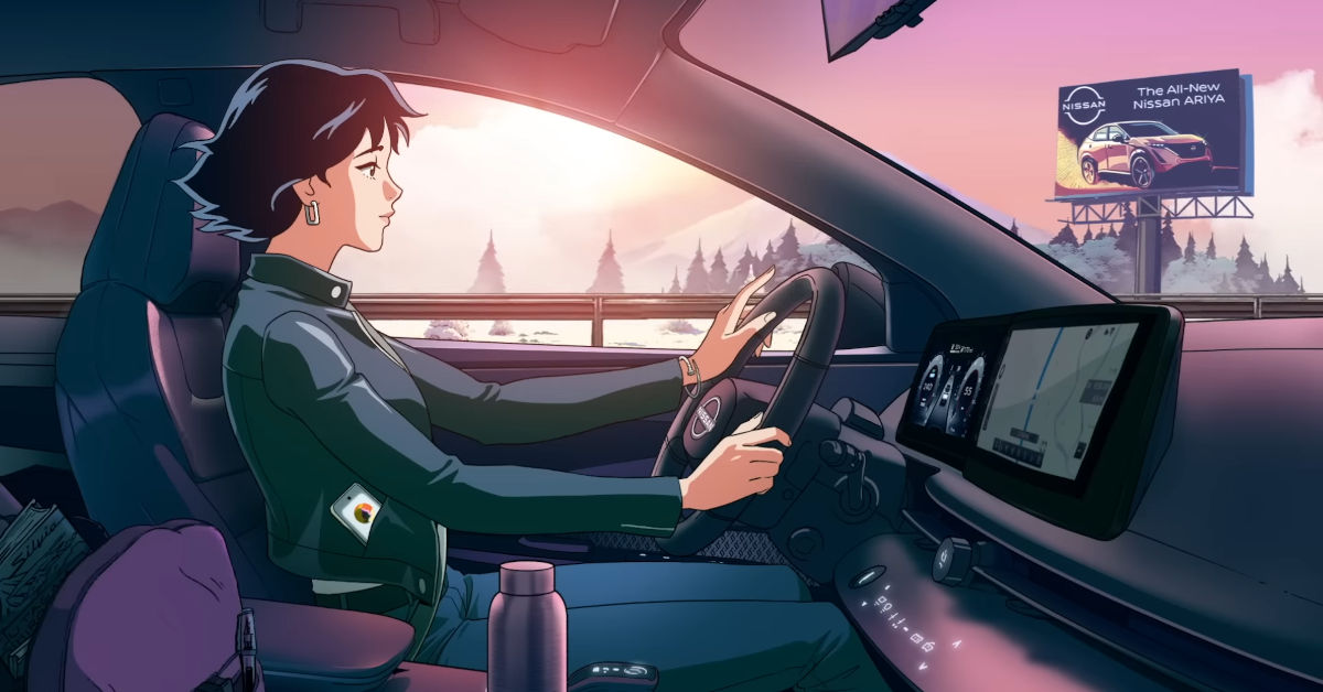 Pese a no ser un anuncio al uso, la animación incluye algunos emplazamientos de la marca Nissan Ariya, en el volante y en algunas vallas publicitarias que vemos pasar de fondo.