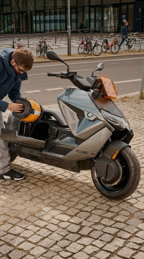 Diseño bajo y funcional con estilo disruptivoChasis con batería integrada en el piso, asiento flotante, estética limpia tipo maxi-scooter futurista y compartimento lateral desplegable para casco