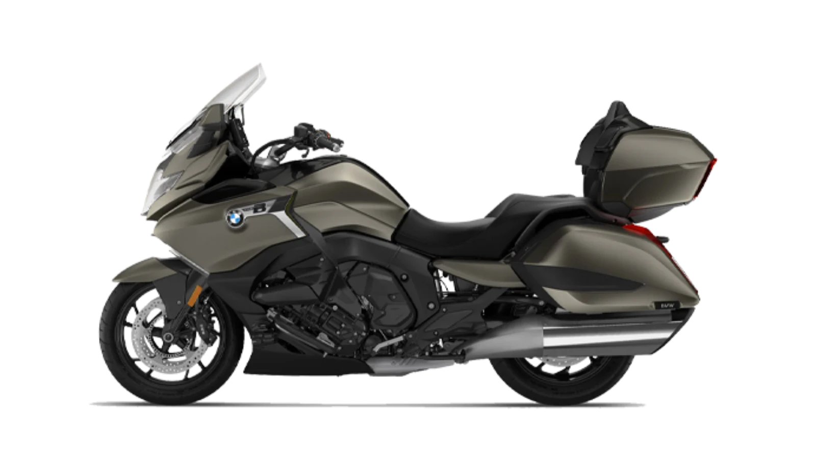 Diseño profileado con parabrisas panorámico, estribos amplios, gran topcase con respaldo, evocando comodidad y presencia sobre dos ruedas