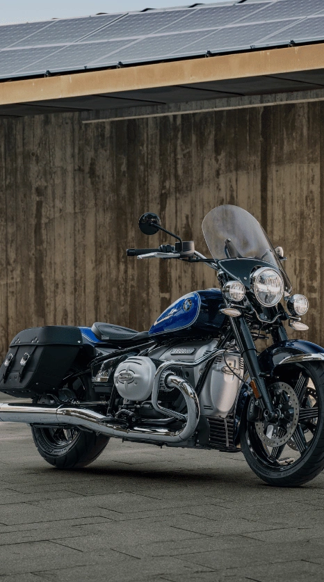 Equilibrio vintage‑tourer auténticoDiseño clásico con maletas de cuero, parabrisas desmontable, guardabarros elevados y acabados metálicos que evocan los años 50 sin renunciar a funcionalidad moderna