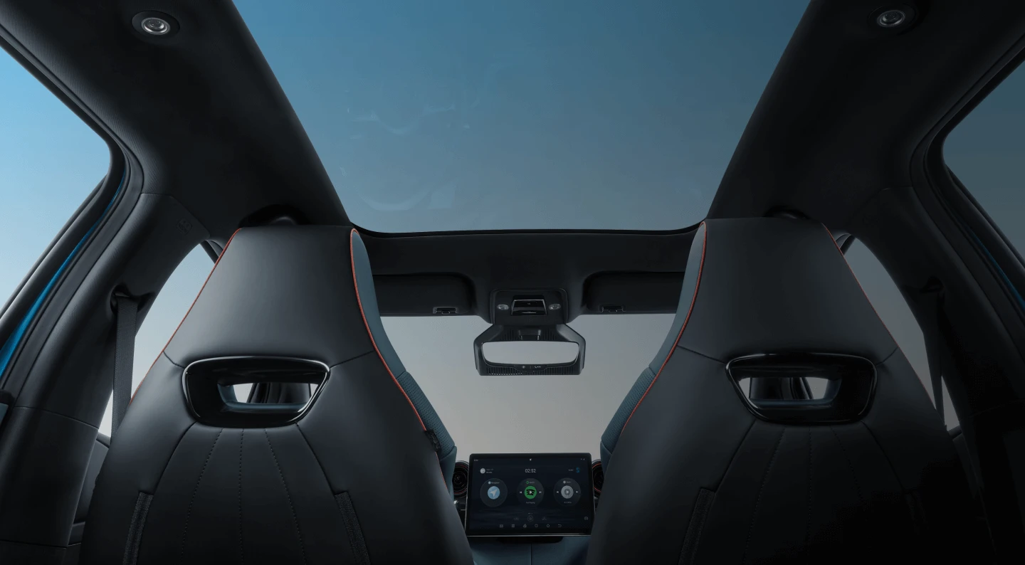 Amplio techo panorámico de cristalEl techo panorámico de cristal que recorre todo el habitáculo proporciona una gran visibilidad hacia el exterior y llena el interior de luminosidad, creando un ambiente más espacioso y abierto.