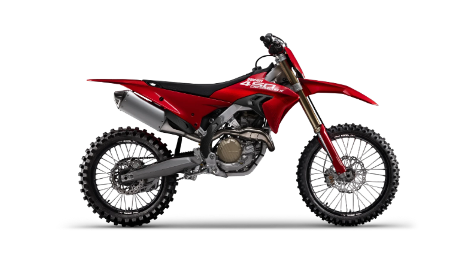 Ruedas de 21 pulgadas delante y 19 oulgadas detrás con neumáticos off-road que garantizan tracción y control total en motocross